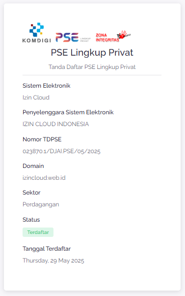 💼 Prosesnya cepat, amanah, dan tanpa ribet.✅ Sangat saya rekomendasikan Izin Cloud !