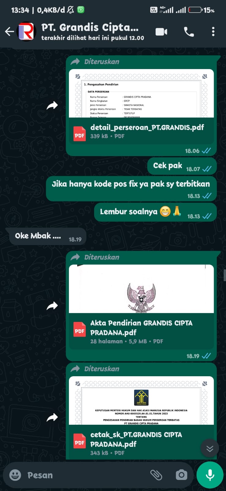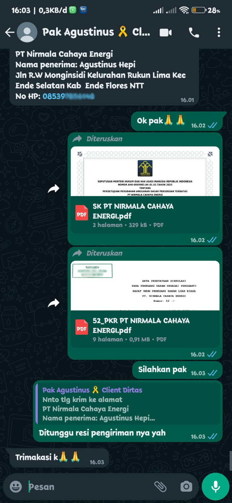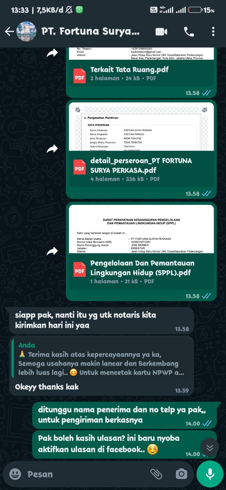 Saya terima dokumen perusahaan dalam kondisi sangat baik. ✨
